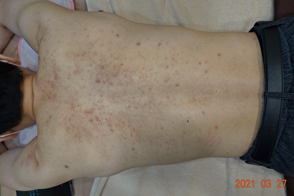 [대구점] 20년 이상 치료를 포기했던 등 색소침착, 모낭염, 가려움이 화안치료로..